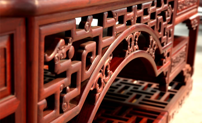 流程三雕刻工序 為了讓紅木家具看上去更美觀,在木工工序完成之后一般都會用一些或簡單或復(fù)雜的雕花來進行裝飾,也就是行業(yè)中所說的雕刻紋飾。雕刻紋飾必須在“認(rèn)榫”完成后進行,因為“認(rèn)榫”時需要修整,如果先做好雕花再開榫,紋理很難保證雕花部件都在同一平面上,而此時為了保證雕花...
